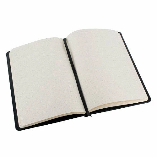 The webnotebook is the hottest sensation from Rhodia. This black desk-sized journal goes everywhere and is filled with functionality. Features 90g ivory Rhodia dot grid paper and a black Italian leatherette hard cover